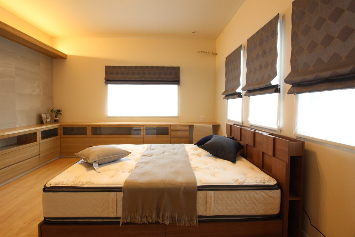 リビングと寄り添うことで、奥行きを感じさせる空間となる。 寝室にはやさしい自然光が届き、