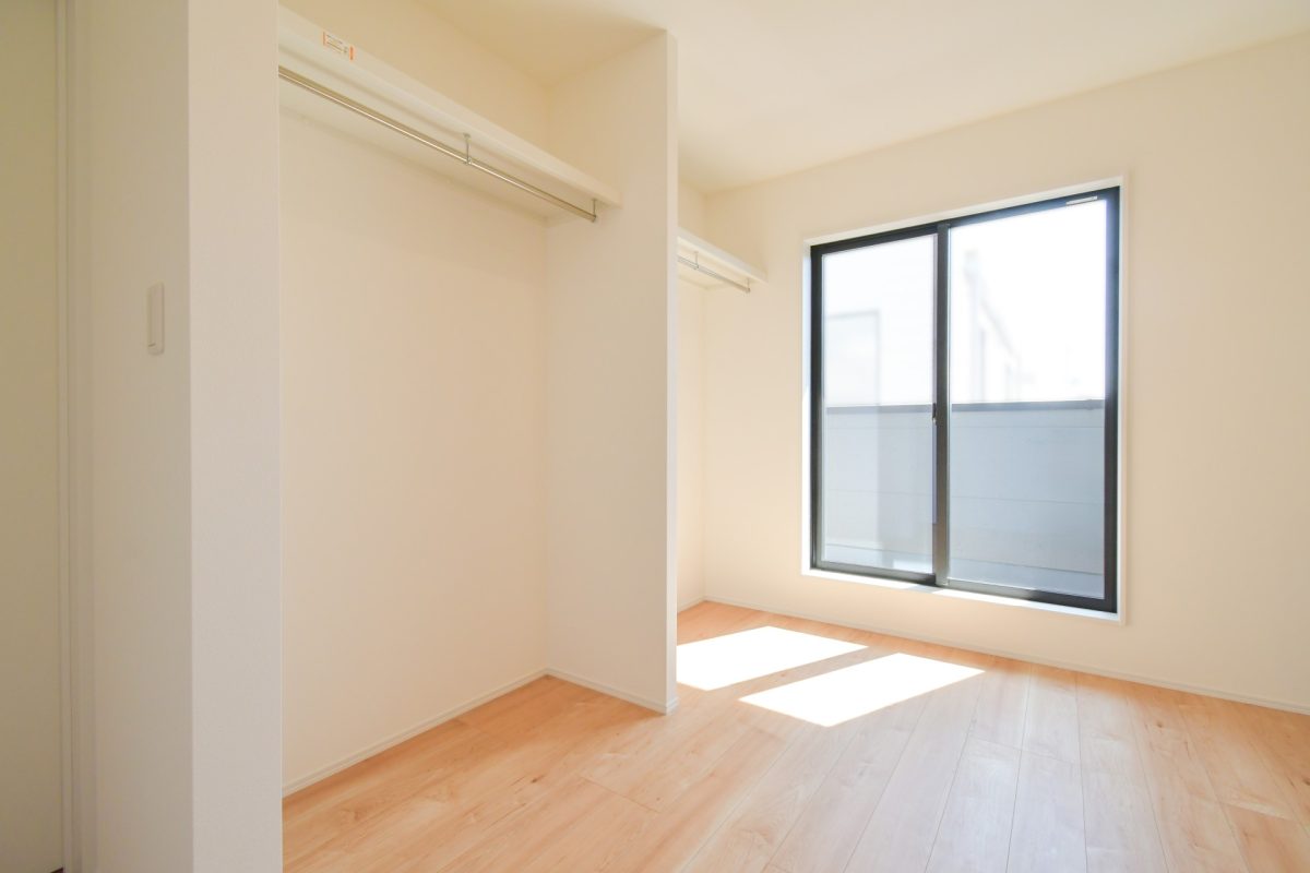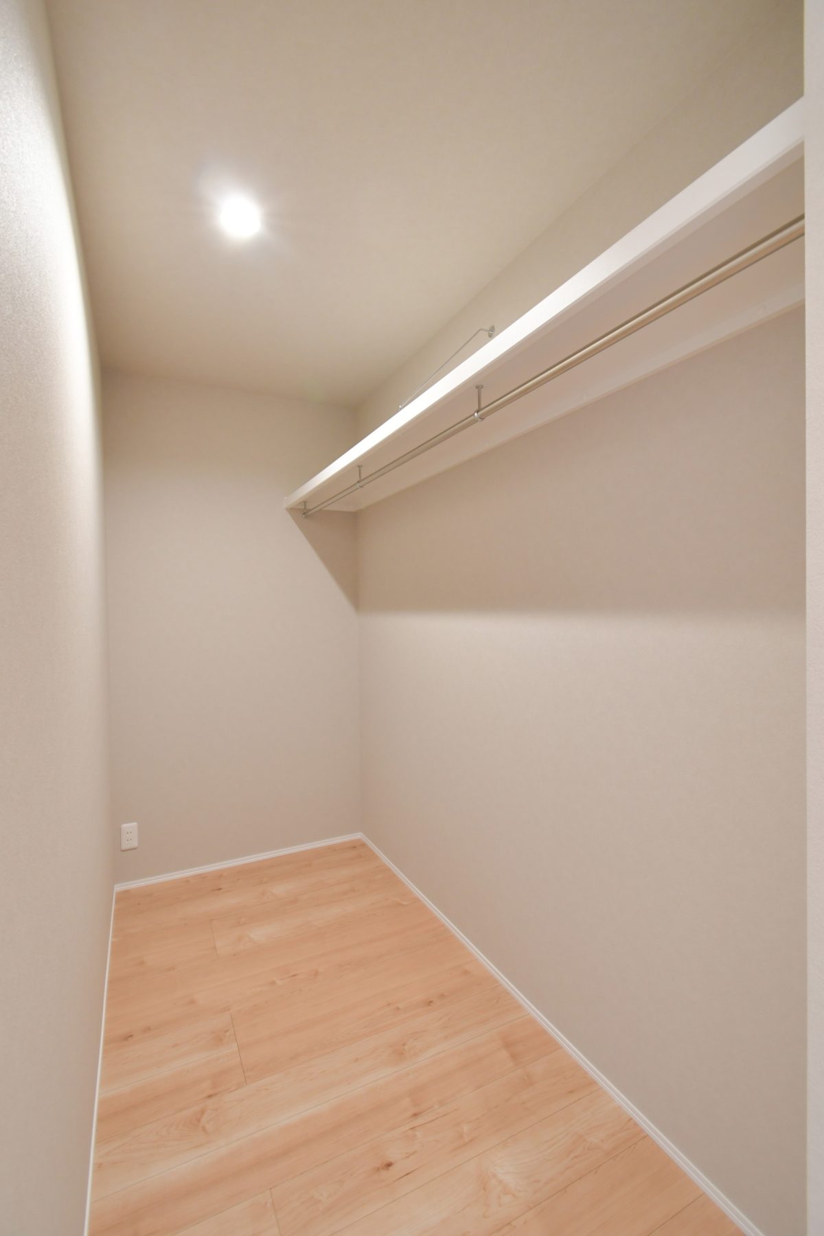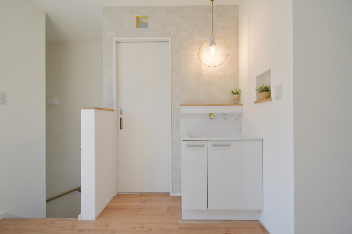 大きな窓から光と風を受け、洗う・干す・しまうがひとつの場所で完結し、隣接するウォークインクローゼットは、家族の暮らしをすっきりと支えます。