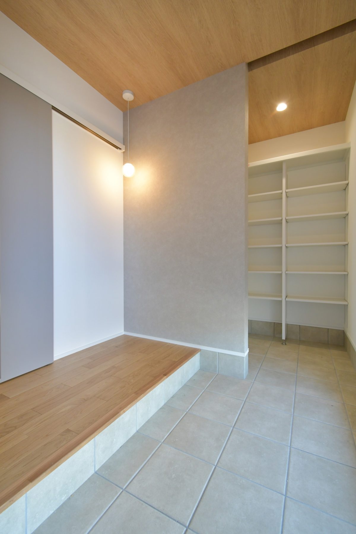 玄関の地窓から差し込むやわらかな光は、日常の始まりをそっと明るく照らし、シューズクローゼットからパントリー、そしてキッチンへと続く動線は、買い物帰りの手を軽やかに解き放ちます。