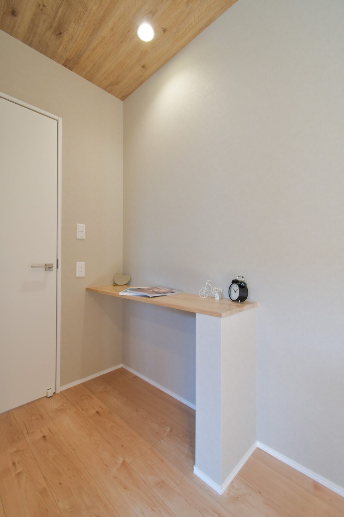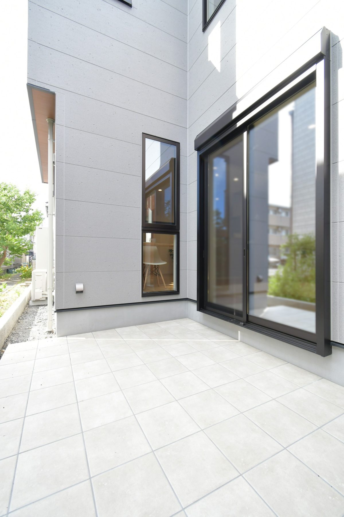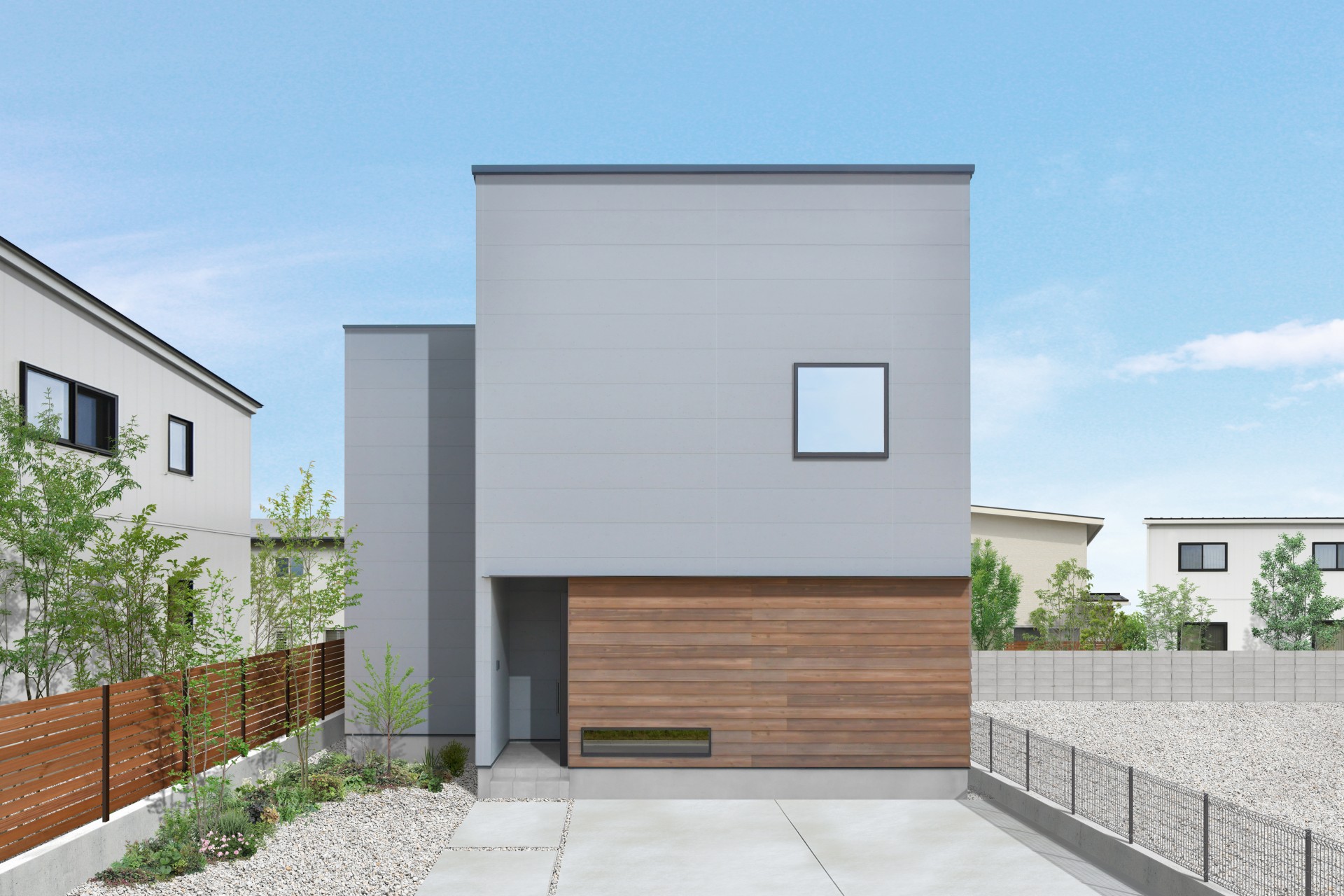 灰色の静けさと木目の温もりが重なり合い、その佇まいはモダンでありながら、やわらかく家族を迎えます。